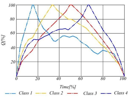 The normalized floods are grouped into classes that contain dimensionless floods with a similar shape so that a set of up to 10–15 classes (depending on the duration with the available data) is generated.