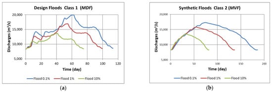 Both the MDF and the MVF should be used to decide on the framework operation rules of reservoirs, during medium and extraordinary floods. At the same time, both types of floods represent boundary conditions for determining the position of the infiltration curve through dikes and for dike stability evaluations during flood periods. Since the MDF has a lower duration than the MVF, while its maximum discharges are higher, it can lead to a potentially risky situation. At the same time, the MVF can also put the dike stability in danger (even if its maximum discharges are lower than in the case of the MDF), because of its long duration. Finally, both types of floods can be used for deriving the uncertainty related to the delineation of flooded areas, as requested in the new cycle of implementation of the Flood Directive.
