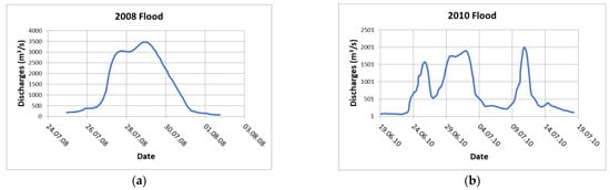 Both of the above parameters (maximum discharge, flood volume) are used in establishing reservoirs’ reserved volumes for flood control and spillways’ characteristics. In the case of very large reservoirs (e.g., the Three Gorges Dam []), the partial storing of incoming flood volumes, with corresponding regulation of the downstream discharges, is a feasible alternative as well.