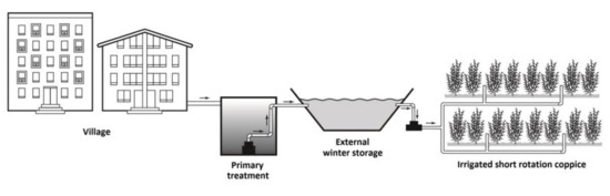 Option A: Operation of a wastewater irrigated short rotation coppice system with “external winter storage”.