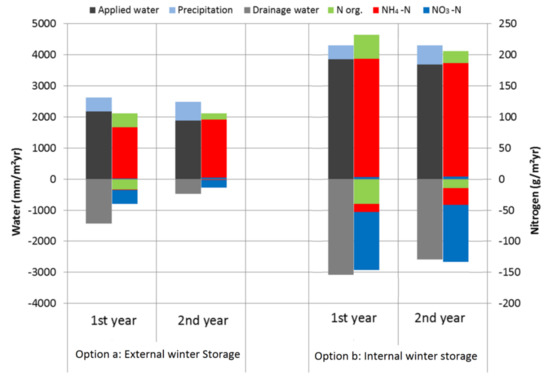 In addition, it has been observed that the irrigation period for option A can be extended up to 6 months starting in mid-April and ending in mid-October, resulting in smaller winter storage, making this option even more attractive in terms of investment cost.