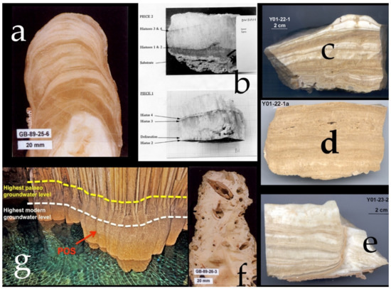 - Moseley, G.E.; Richards, D.A.; Smart, P.L.; Standish, C.D.; Hoffmann, D.L.; ten Hove, H.; Vinn, O. Early–Middle Holocene Relative Sea-Level Oscillation Events Recorded in a Submerged Speleothem from the Yucatán Peninsula, Mexico. Holocene 2015, 25, 1511–1521. [Google Scholar] [CrossRef]