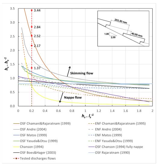 - Chamani, M.R.; Rajaratnam, N. Onset of skimming flow on stepped spillways. J. Hydraul. Eng. 1999, 125, 969–971. [Google Scholar] [CrossRef]
