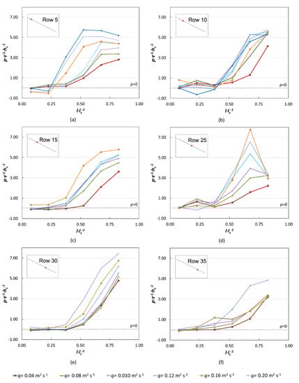 | Flow Rate q (m2 s−1) | H′ (hc hs−1) | Row Number | Distance of the Inception Point Li | |||