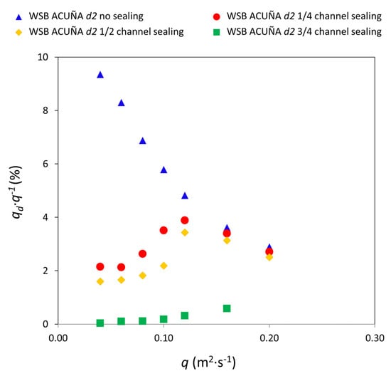 - In both WSBs, the longitudinal joints between blocks were the source of the highest percentage of the total leakage flow. In addition, these leaks came mostly from the upper area of the flume.