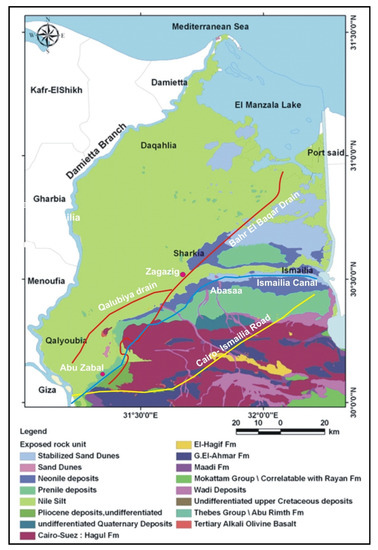 Geologic map of the eastern Nile Delta [21] (modified after [26]).