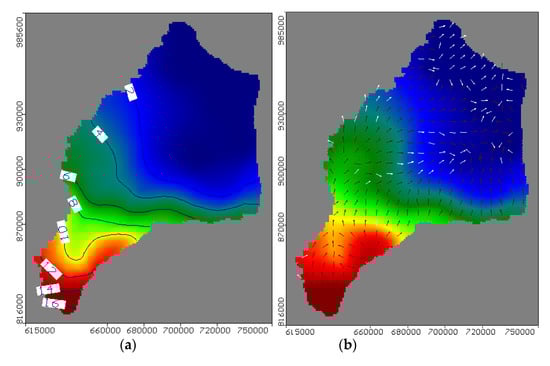 A real view of (a) groundwater levels and (b) flow pattern and velocity direction in the ENDA.