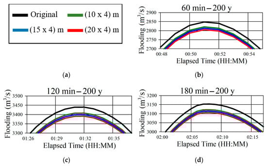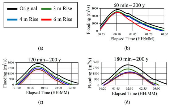 Table 2). The 60 min duration and 200 year return period scenario saw the inflow of water into the Suyeong River increase by 1.2%. For the 180 min duration, 200 year return period scenario, the inflow increased by 0.7%.