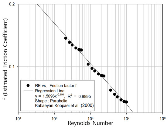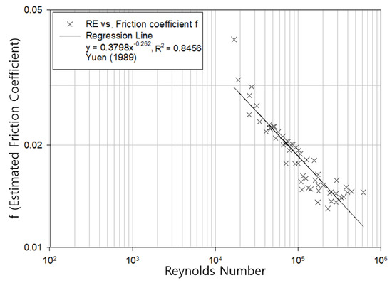 The representative equation for the friction loss coefficient in uniform flow can be written as Equation (3):