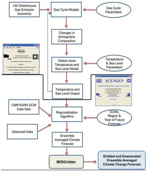 MAGICC/SCENGEN is a coupled gas-cycle/climate model (MAGICC; Model for the Assessment of Greenhouse-gas Induced Climate Change) that drives a spatial climate-change SCENario GENerator (SCENGEN). Since 1990, IPCC [] has used MAGICC to produce projections of future global-mean temperature and sea level rise.