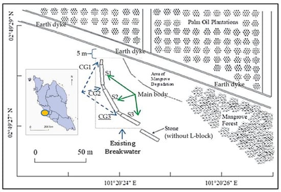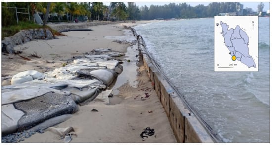As a maritime nation, Malaysia’s shoreline is consistently exposed to threats from the ocean, resulting in coastal erosion and sea-level rise. The country is located near the equator in Southeast Asia where its major ports are situated within international maritime and shipping routes []. It is surrounded by seven sea areas where the total sea area is almost twice the land area []. Hence these two distinctive threats had continuously causing adverse impacts on physical, socioeconomy, and biodiversity along the coast [].