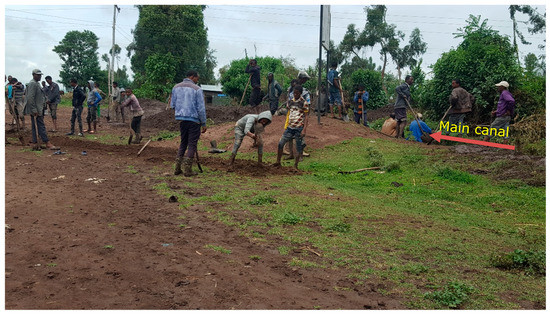 A lack of resources for operation and maintenance aggravates problems of excessive sedimentation [17], as the physical infrastructure of many schemes is deteriorated. In farmer-led schemes, farmers apply tacit knowledge to temporarily reduce the quantity of sediment entering their irrigation schemes, for example, by delaying water abstraction when river sediment loads are particularly heavy [16] and diverting surface runoff to prevent it from entering the canal (Figure 1). To clear excessive sedimentation, they organize seasonal or annual desilting campaigns, which are labor-intensive and require participation of many farmers over several days. For example, in one irrigation scheme serving 430 ha with a main canal length of 12 km, some 3118 labor days were required per campaign to remove the accumulated sediment [16]. Of the total time required for crop cultivation, farmers were found to invest one-fourth of their time in sediment management activities [16]. However, even with this management, farmers have been unable to adequately and sustainably deal with problems of excessive sedimentation.