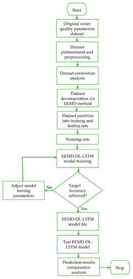 Complete flowchart of the proposed hybrid EEMD-DL-LSTM NN-based water quality parameters prediction model.