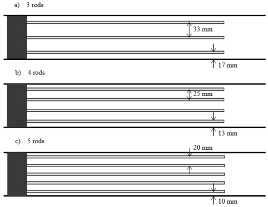 Schematic view showing the rod spacing for traps with (a) three, (b) four, and (c) five rods.
