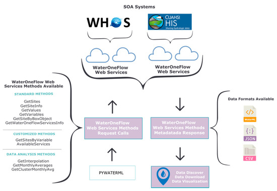 We developed Pywaterml, a Python package, as part of this work. Pywaterml is a library that connects to the different WaterOneFlow web services and retrieves time series data from systems that use the WaterML 1.0 standard. Pywaterml provides the core functions of WDE and allows others to access these functions through Application Programming Interfaces (API) for use in other applications. Pywaterml is free and open-source and is available for download and installation in any Python environment using the PyPI (Python Package Index) or Conda package management systems.