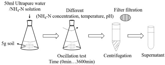 To avoid the interference of other chemical components, the groundwater polluted with organics used for the leaching test was manually made in the lab with ultrapure water and grade pure potassium hydrogen phthalate. Potassium hydrogen phthalate was chosen as the organic substance because it is a standard solution with COD, which makes our experimental results more universal and repeatable. In detail, according to the test needs, potassium hydrogen phthalate solutions of 10, 20, 40, 50, 60, 80, and 100 mg/L were prepared for use. In addition, the potassium hydrogen phthalate solution of 50 mg/L was divided into eight parts for use, pH of which was adjusted to 3, 4, 5, 6, 7, 8, 9, and 10 through adding HCl or NaOH, according to the needs. Ultrapure water was used for the blank test instead of the polluted groundwater.