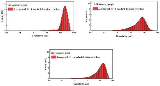 Particle sizes of the collected sediment samples, (a) I sediment, (b) II sediment, (c) III sediment.