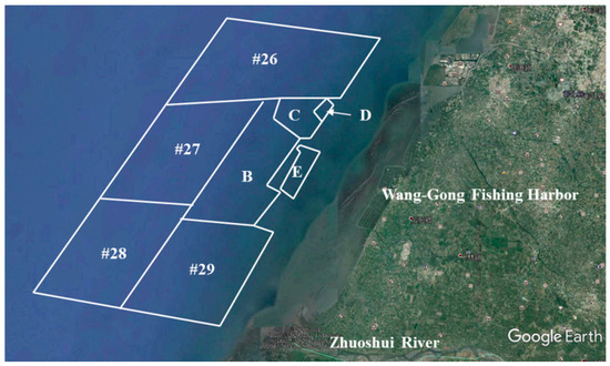The target offshore wind farm in this study. Source: Environmental Impact Assessment Inquiry System (https://eiadoc.eap.gov.tw/EIAWEB/Default.aspx, (accessed on 28 March 2021)).