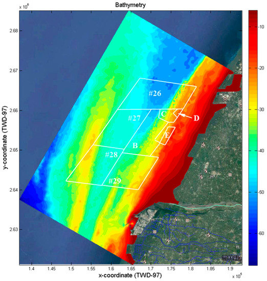 - Wang, H.Y.; Fang, H.M.; Hsiao, S.S. Study on the Topographical Change of Heping River Estuary. J. Coast. Ocean. Eng. 2018, 18, 205–225. [Google Scholar]