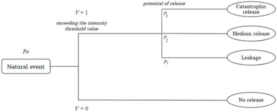 The probabilistic model used to derive the causal reasoning of the BN is the event tree depicted in Figure 1 for the scenario of release triggered by the natural event. Next, the escalation of the release is modelled as in the traditional risk assessment for major accident hazard establishments.