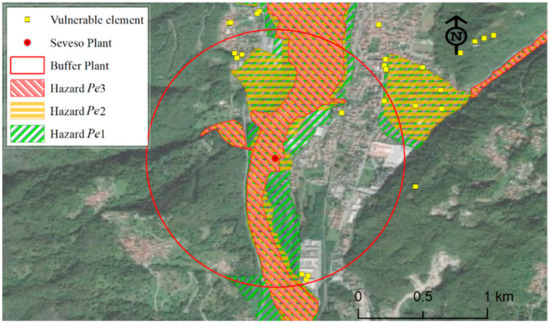 Table 3 summarises Seveso establishments included in each different flood hazard area. Detailed information about the presence of the category of population (Cat1, Cat2 and Cat3) in the buffer area of each establishment is given as Supplementary Materials (Table S1).