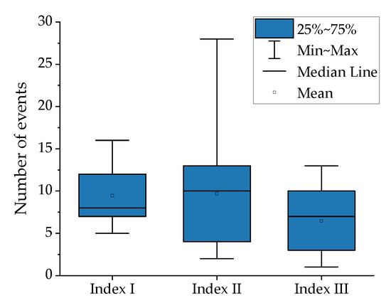 For the hot day index, the assumption was taken into account that hot periods may result in thermal stresses caused by temperature differences between the soil and water in the pipe or thermal expansion of the pipe in a longitudinal direction. Furthermore, the water demand is higher in periods of high temperature, and, as a result, larger differences in internal pressure over the day and night might occur [73]. At the same time, it is often assumed that the comfortable temperature range for people is from 17 to 24 °C. With regards to this, the average temperature higher than 25 °C for the next 5 days was adopted as the hot day index.
