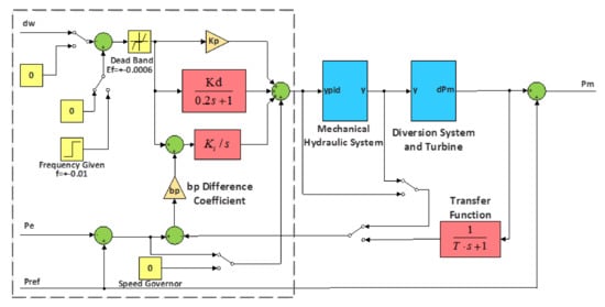 In this work, the governor adopts the proportional–integral–differential (PID) controller, where the proportional loop aims to shorten response time, the integral loop decreases the steady error, and the differential loop improves the overshoot response. Generally, the output signal of a universal PID controller is expressed as: