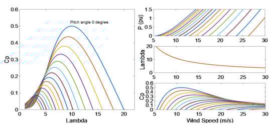 where λa is the tip velocity ratio and β is the pitch angle of the blade. Using all these equations, the wind characteristic curves can be obtained and described as shown in Figure 7.
