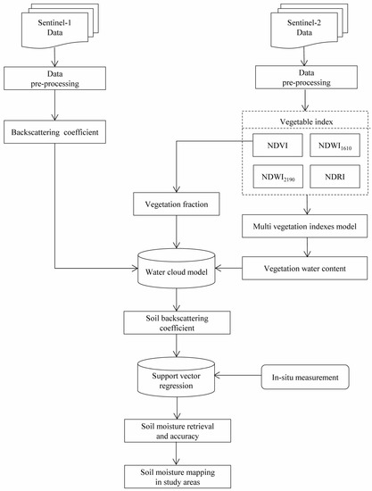 Flowchart of the soil moisture retrieval process based on Sentinel-1 and Sentinel-2 data.