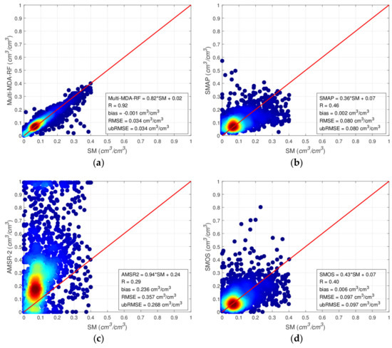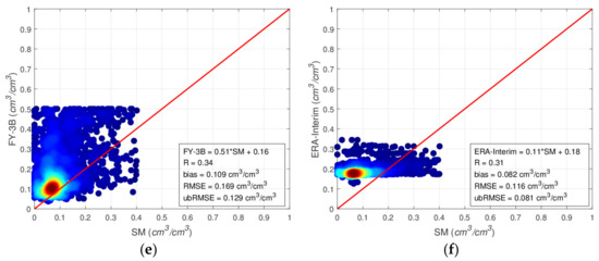 | 6657 | 0.125° | R = 0.94 bias = 0.000 cm3/cm3 RMSE = 0.033 cm3/cm3 ubRMSE = 0.033 cm3/cm3 |