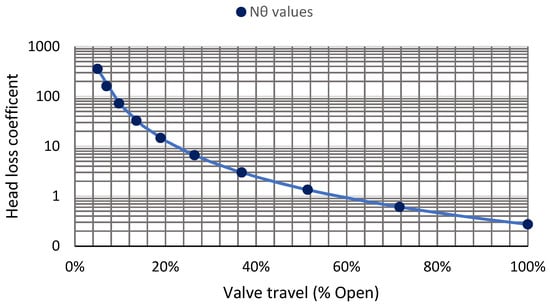 To determine the separation interval in the discretization that covers the entire SS, the head loss coefficients (k) are expressed on a logarithmic scale. Consequently, 10 opening positions have been set that allow a good diversity of opening options that composed the options list Nθ for this type of DV. HC is not part of the SSR process, so a coarse options list was not defined for its analysis. Figure 4 shows the Nθ values with the value that each gene represents.