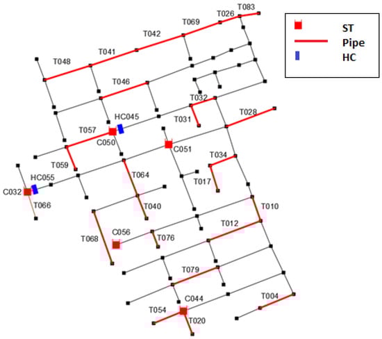 In Equation (3), Di is the diameter of the pipe, and the coefficients γ and μ are used to adjust the cost of the HC elements to the place where the methodology is applied.