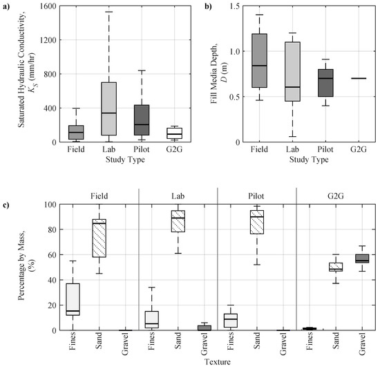 - Stander, E.K.; Borst, M.; O’Connor, T.P.; Rowe, A.A. Measure Twice, Build Once: Bench-Scale Testing to Evaluate Bioretention Media Design. In Low Impact Development 2010; American Society of Civil Engineers: Reston, VA, USA, 2010; pp. 126–138. [Google Scholar] [CrossRef]