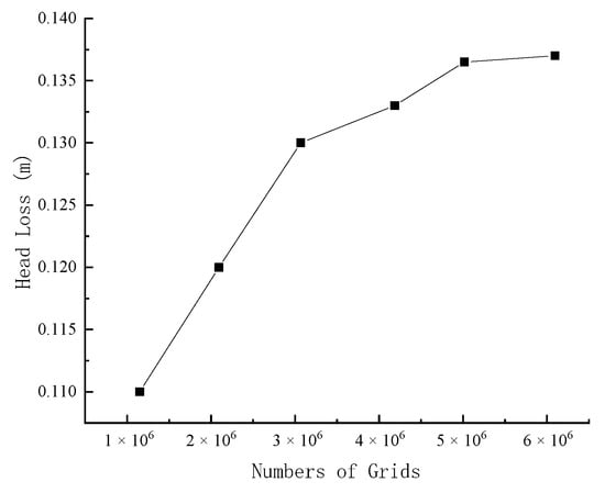 It can be considered that the calculation result of the grid with the number 6,096,321 is independent of the degree of grid density, as presented in Figure 4. For that, other models are calculated in this paper with the same grid density.