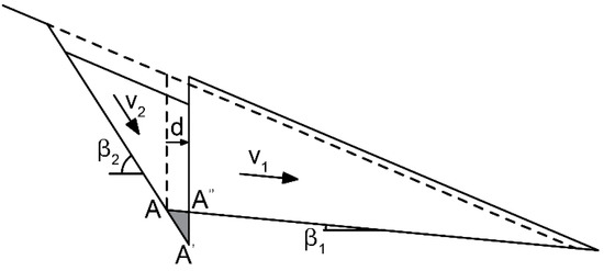 As shown in Figure 3, the blocks slide rigidly on the slip surface, avoiding separation and overlapping at the vertical wall. However, the soil mass indicated as AA’A” in Figure 3 passes over the slip surface, breaching the congruence. Such a violation could be considered acceptable from an engineering point of view if the landslide displacements are small in comparison with the size of the unstable soil mass [37]. Therefore, after the computation is completed, it necessary to check if the area AA’A” can be neglected in comparison with that of the unstable soil mass. In this connection, area AA’A” can be calculated as , where d is the horizontal displacement of the unstable soil mass (Figure 3).
