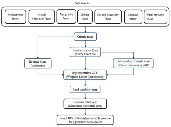 Schematic diagram of land use suitability for agriculture development in the watershed Tajan, Iran.