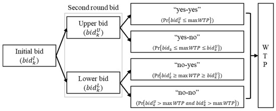 - Hanemann, M.; Loomis, J.; Kanninen, B. Statistical efficiency of double-bounded dichotomous choice contingent valuation. Am. J. Agric. Econ. 1991, 73, 1255–1263. [Google Scholar] [CrossRef]