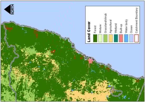 - Hill et al. [,]: 38 catchments throughout Australia (catchment areas between 29 and 95 km2).