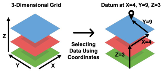 Locating Data in a Three-Dimensional Grid with (X, Y, Z) Coordinate Values.