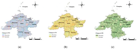 As shown in Figure 10, WD, CD and FD changed differently. Increased WD and CD took up more areas than decreased one, but FD changed in the opposite.
