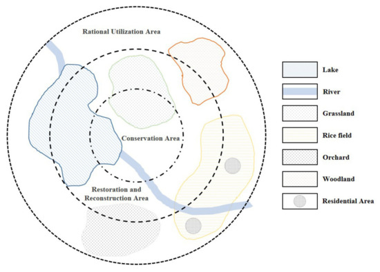 - As sink landscapes with good water quality and less disturbance, lakes can be included in conservation areas to improve ecosystem function. As an ecological corridor connecting the park to surrounding areas, the river should be located outside the core area. Upstream portions should remain some distance from the source landscape to control and manage the invasion of water pollution from internal and external sources. Herbaceous swamps provide habitat, breeding, and foraging places for birds, but as their ecology is fragile, they should be included in conservation, restoration, and/or reconstruction areas. To enhance the landscape heterogeneity and permeability of the wetland park, woodlands and grasslands can be used as buffer zones to separate water areas from garden plots and cultivated and built-up land. These buffers would also aid in the interception and emission reduction of pollutants through landscape structure adjustment. Areas close to roads and scenic spots in woodlands should be included in rational utilization areas for ornamental and tourist purposes. Built-up land, including residential areas, roads, infrastructures, etc. should also be included in rational utilization areas and kept far away from conservation areas to reduce the intrusion of pollutants (Figure 20).