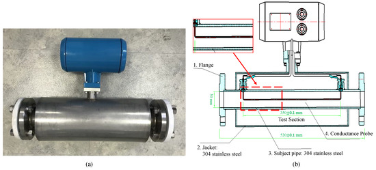 (a) Photograph of the water holdup instrument designed for the experiments. (b) The internal structure of the water holdup instrument.