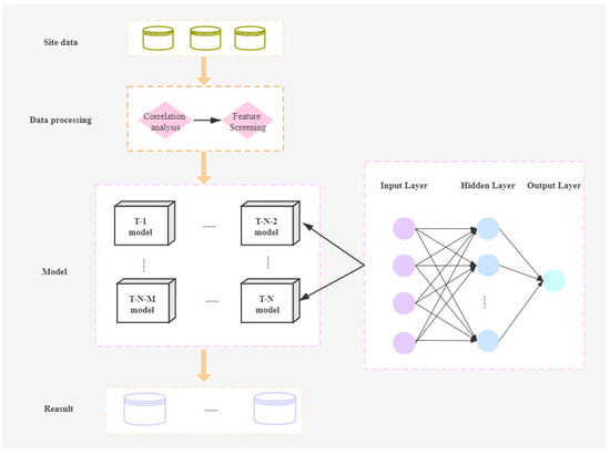 In this paper, the BP neural network model is modified and adjusted, and the MSBP model (Multi-step Back Propagation) is proposed. The model architecture process is shown in the Figure 4. The model is divided into four parts: site data, data processing, model, and result.