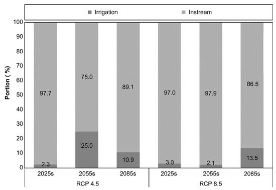 Comparison of the portions of irrigation and instream water by the climate change scenario.