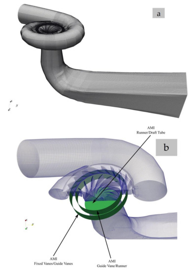 - Carravetta, H.; Fecarotta, A.; Ramos, O. Numerical simulation on Pump as Turbine: Mesh reliability and performance concerns. In Proceedings of the 2011 International Conference on Clean Electrical Power (ICCEP), Ischia, Italy, 14–16 June 2011; pp. 169–174. [Google Scholar]