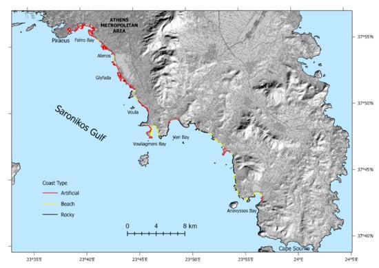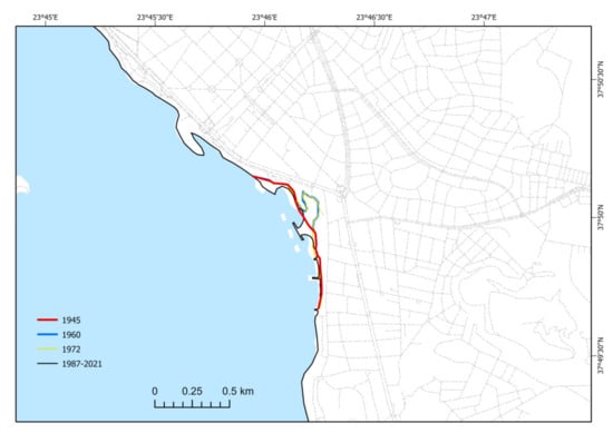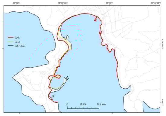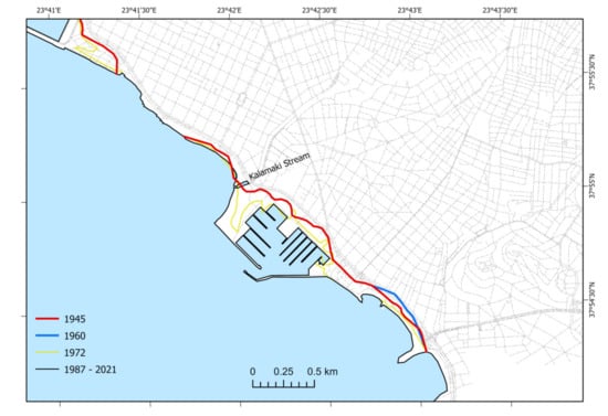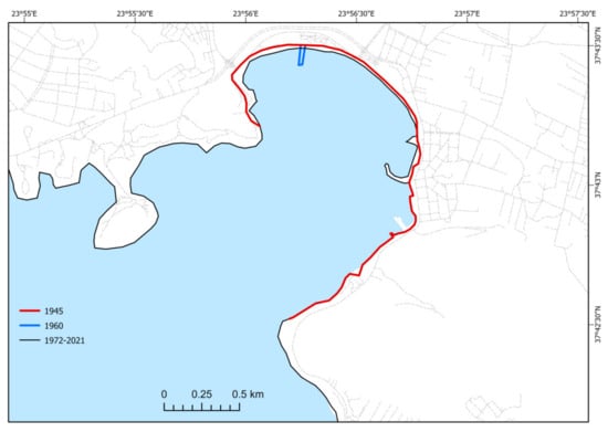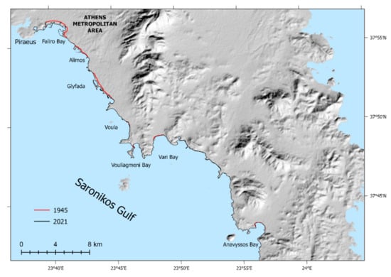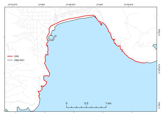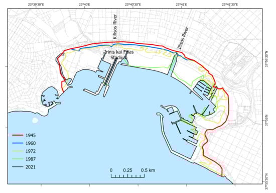 Skilodimou, H.D.; Antoniou, V.; Bathrellos, G.D.; Tsami, E. Mapping of Coastline Changes in Athens Riviera over the Past 76 Year’s Measurements. Water 2021, 13, 2135. https://doi.org/10.3390/w13152135