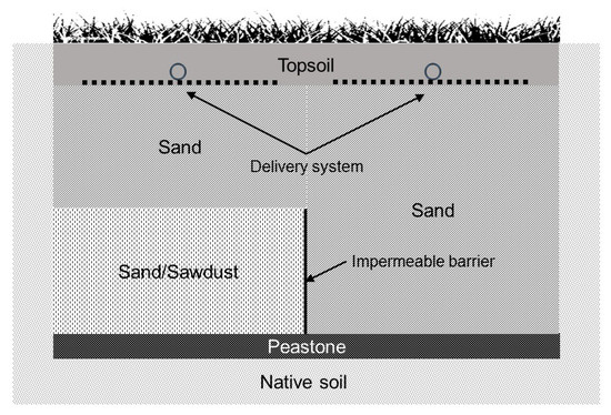 - Gill, L.W.; O’Súlleabháin, C.; Misstear, B.D.; Johnston, P.M. Comparison of stratified sand filters and percolation trenches for on–site wastewater treatment. J. Environ. Eng. 2009, 135, 8–16. [Google Scholar] [CrossRef]