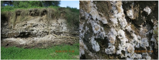 Pictures showing evaporitic salt “magadi” on the soil surface at Ngarenanyuki on the northeastern flank.