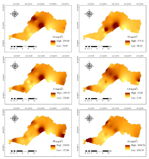 Strict quality assurance and control of all analytical processes were conducted. All polyethylene bottles and glass vessels used were soaked in 10% HNO3 for 24 h, then washed with deionized water, and all the reagents used in the digestion procedure were a guaranteed analytical grade. Blank and parallel samples were analyzed by one per each set of five samples. The standard deviation between duplicates was less than 8%, and the concentrations of heavy metals in blank samples were always below the detection limits. The correlation coefficients of calibration curves of the target metals were greater than the minimum permissible limit for the instrument test (greater than 0.995).