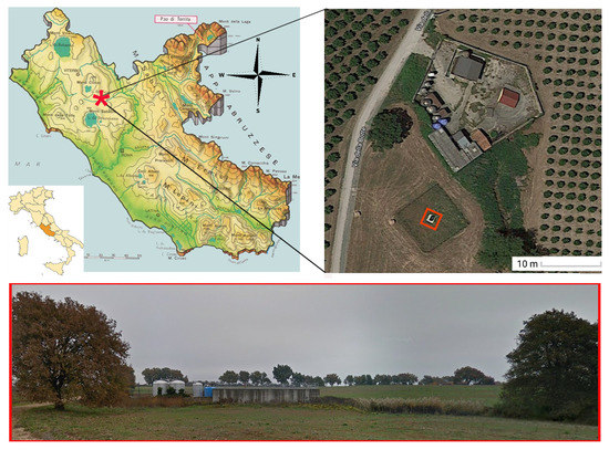 Naturally contaminated groundwater for the experiments, kindly provided by EGATO1-Vt, and Talete Spa (https://www.taletespa.eu/ (accessed on 30 May 2019)), was collected from Varano waterwell, located in Nepi (Viterbo, Lazio, Italy, 42°15’29.2” N 12°18’24.2” E, Figure 1) and was stored in polyethylene tanks at room temperature. Groundwater was collected twice and the As concentration was, respectively, 59.7 μg/L and 46.04 μg/L, while pH was 7.3 in both.